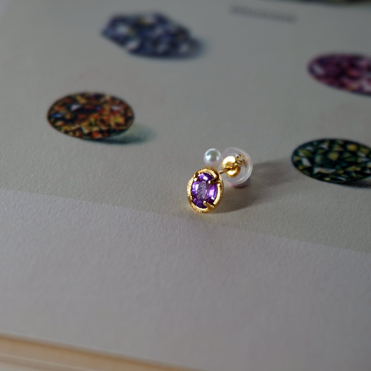 ピンク色を感じる紫のサファイアとK18YGを組み合わせています。