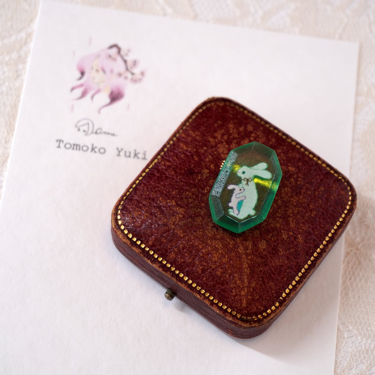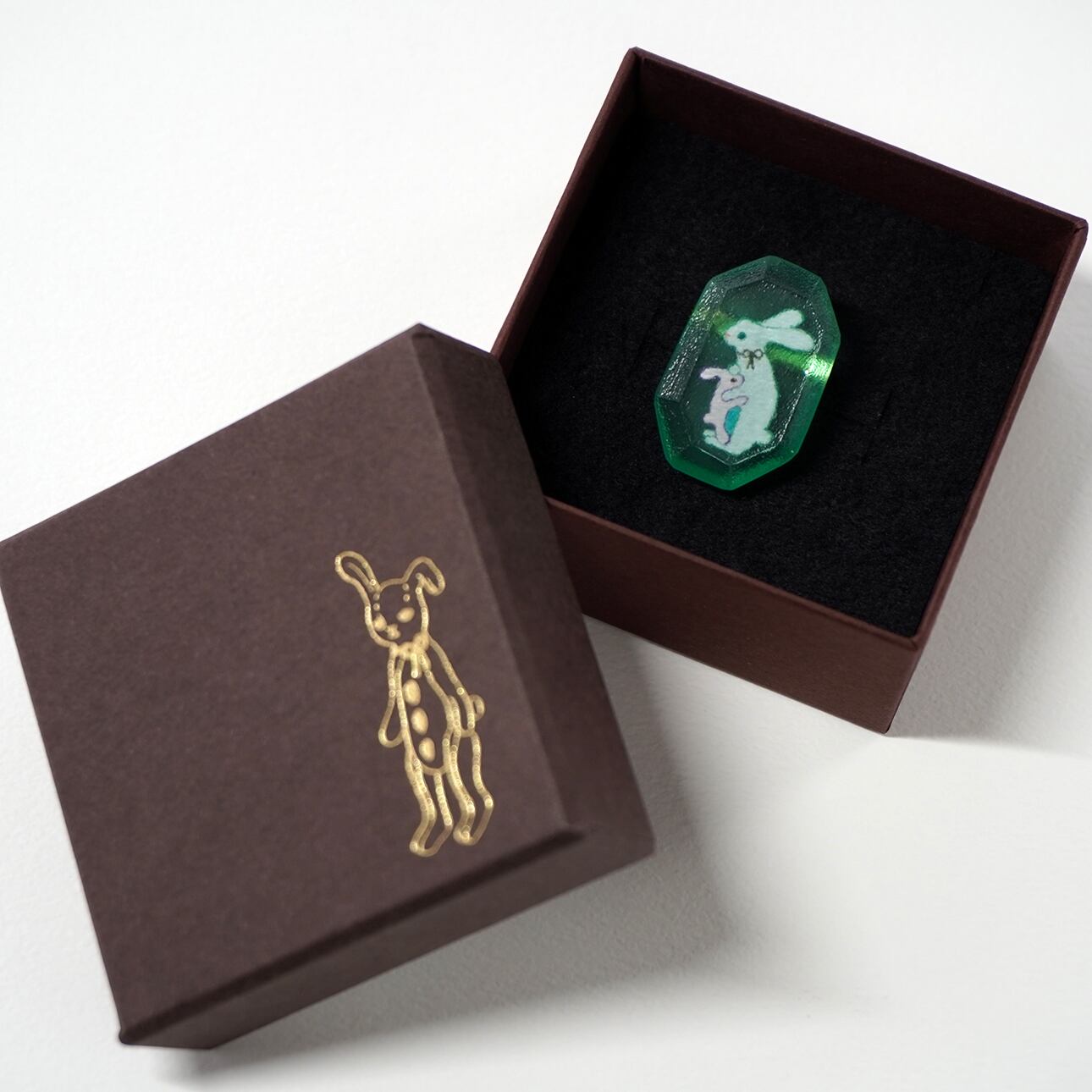 母子うさぎブローチ メロンソーダの色